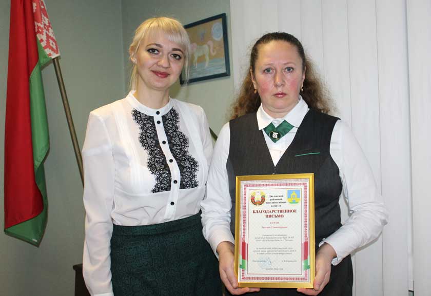 Падзячнымі лістамі райвыканкама адзначаны спецыялісты па аказанні рознічных банкаўскіх паслугаў Таццяна Качан і Марына Жэгала.