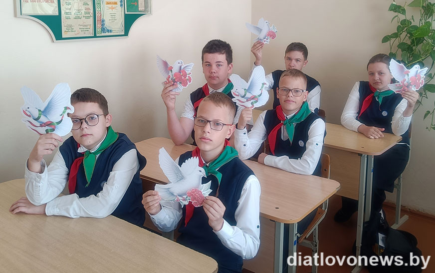 В 6 «Б» классе гимназии № 1 города Дятлово прошел единый Урок Мужества «Чтим. Помним. Ценим», посвященный 80-летию Победы советского народа в Великой Отечественной войне. Учащиеся рассуждали о значении Дня Победы, подвиге белорусского народа , о том, что Беларусь помнит и чтит подвиг павших и живых, известных и безымянных белорусов,