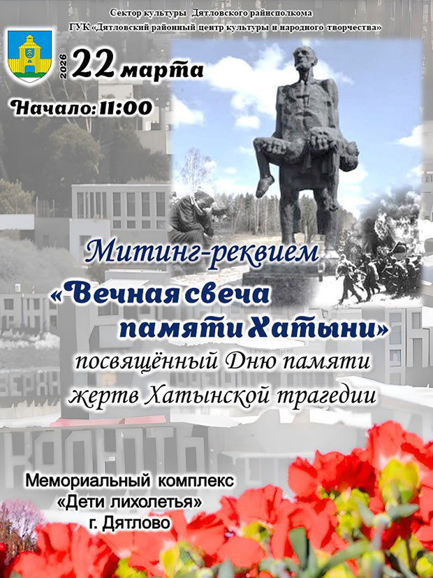 Актуальнае Да ведама грамадзян 1 min read 1207 22 марта в Дятлово состоится митинг-реквием “Вечная свеча памяти Хатыни” administrator 20 марта, 2026 0 Подписывайтесь на телеграм-канал «Дятлово ОНЛАЙН» по короткой ссылке @gazeta_peramoga