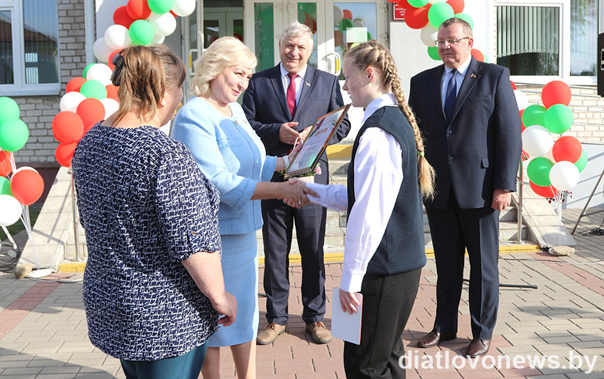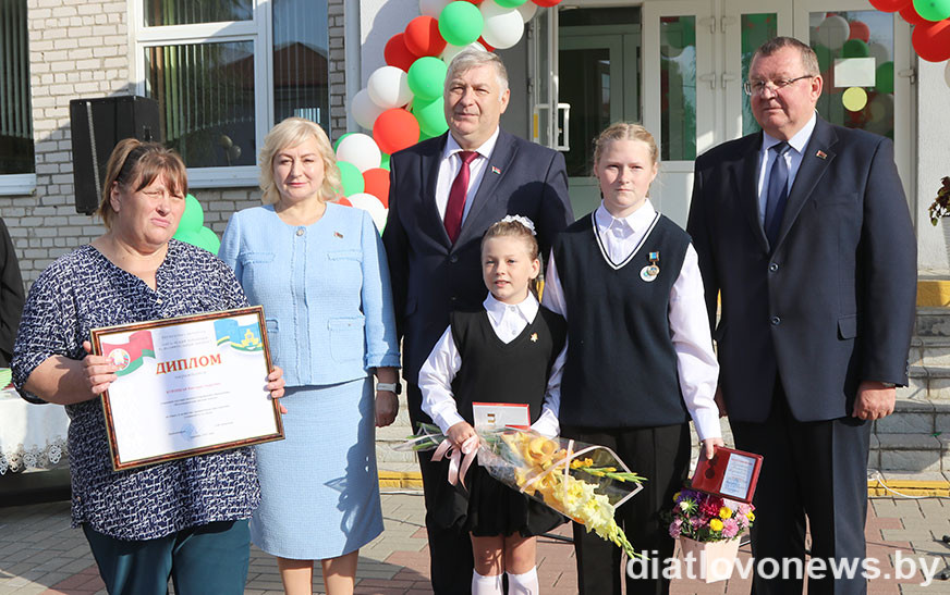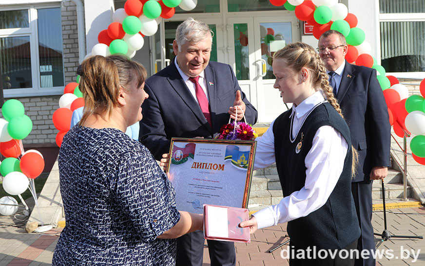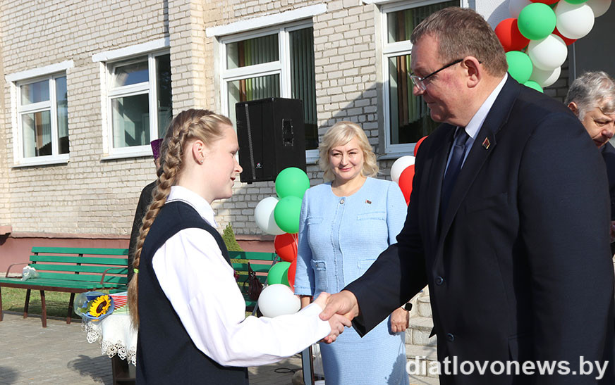 Падзякаваць юнай гераіні за выратаванне чалавека на першавераснёўскую лінейку прыехаў старшыня Дзятлаўскага райвыканкама Андрэй Садоўскі.