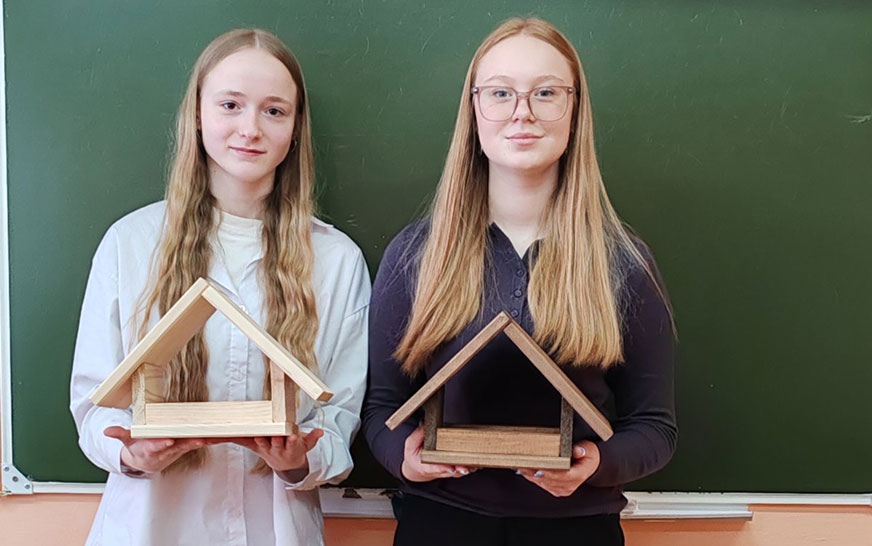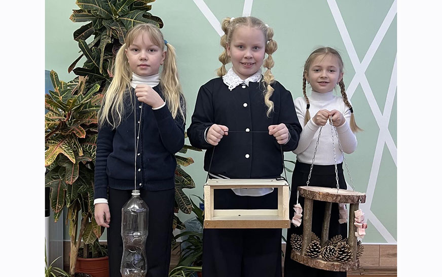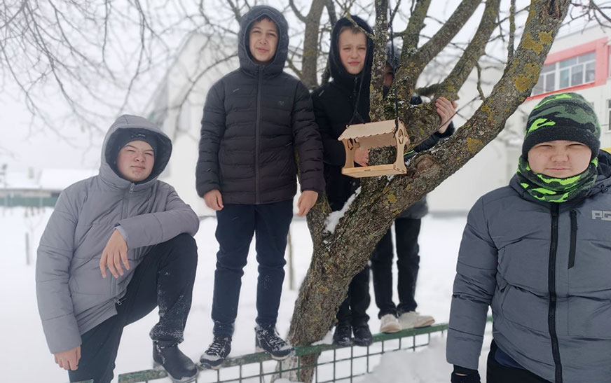 Больш за 20 кармушак, зробленых навучэнцамі і іх бацькамі, размешчаны на тэрыторыі школы. Штодня кармушкі папаўняюцца новымі запасамі корму.