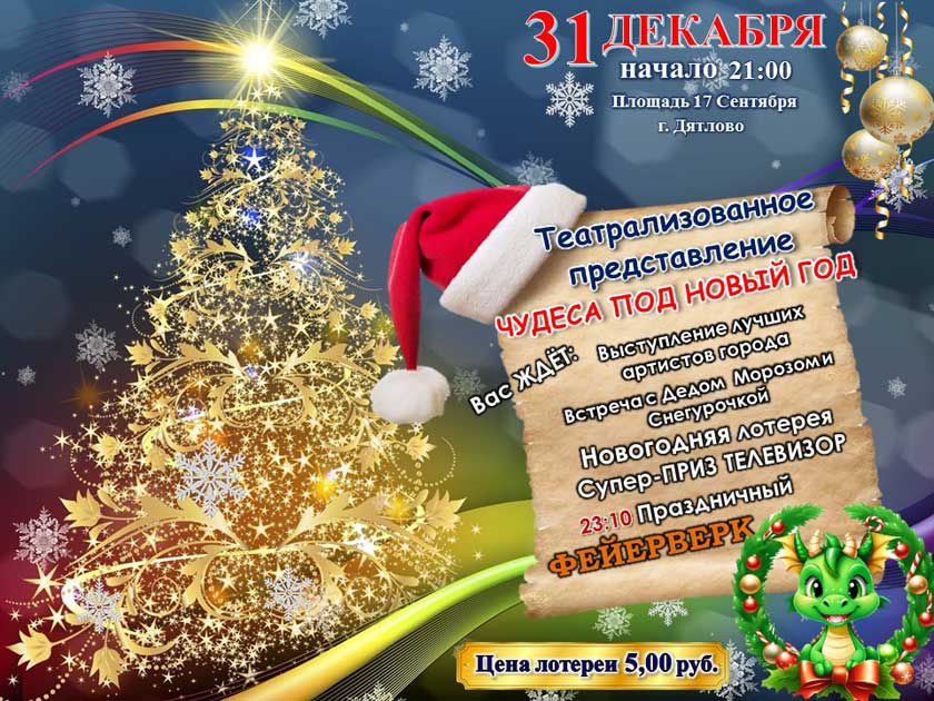 Культура і адпачынак Свежыя навіны 1 min read 243 31 декабря приглашаем на театрализованное представление “Чудеса под новый год” administrator 30 декабря, 2023 0 Подписывайтесь на телеграм-канал «Дятлово ОНЛАЙН» по короткой ссылке @gazeta_peramoga