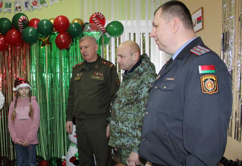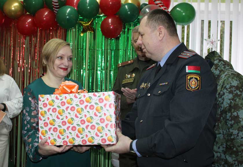 – Падобныя сустрэчы – гэта хвіліны, у якія забываешся пра работу і сур’ёзныя справы, хочацца акунуцца ў казку, – адзначыў Генадзь Суравец. – Ад калектыву ваеннага камісарыята мы перадаём вашай установе цацкі і карысныя рэчы, якія спатрэбяцца ў час заняткаў і гульняў. Віншуем вас з каляднымі і навагоднімі святамі, жадаем здароўя і мірнага неба над галавой.