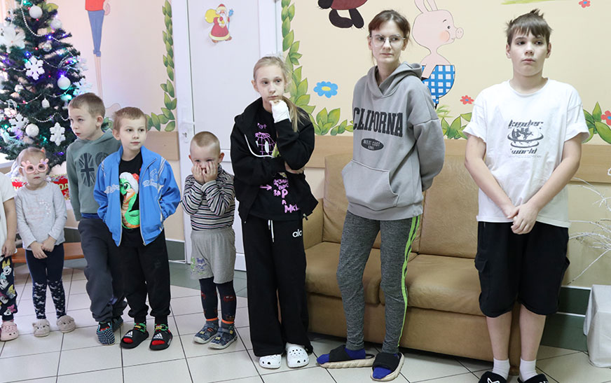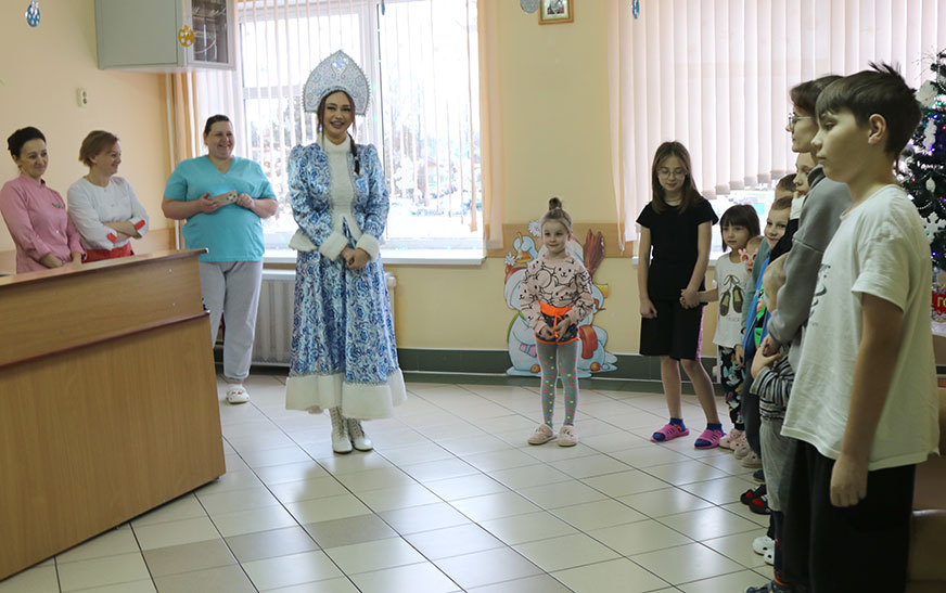 – Вам крышку не пашанцавала, што перад Новым годам знаходзіцеся не дома, аднак нашы чараўнікі-медыкі зробяць усё, каб вы паправіліся і сустрэлі святы з блізкімі, будзьце здаровыя, – звярнулася да маленькіх пацыентаў моладзевы лідар раёна.
