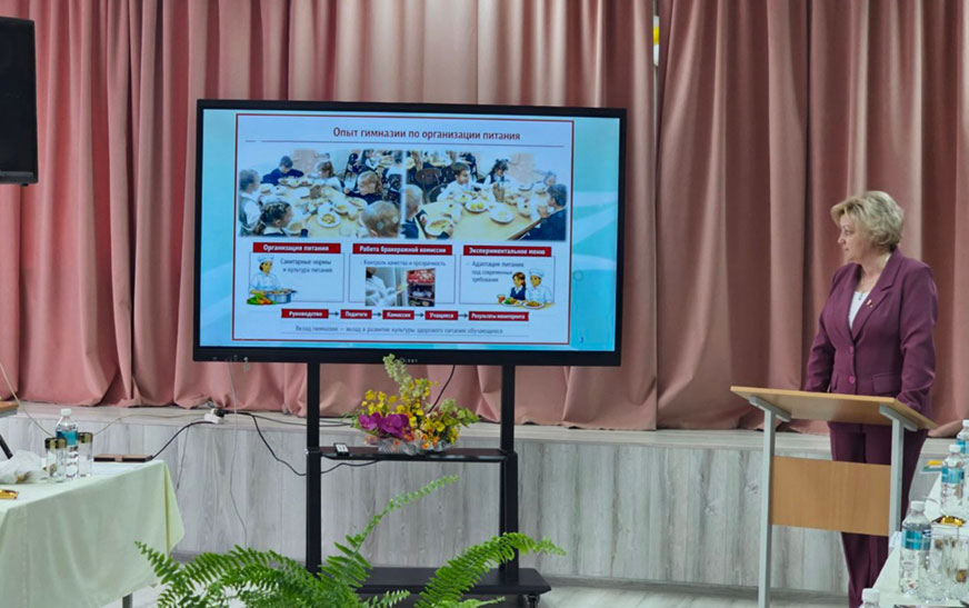 Директор гимназии Вероника Фабишевская представила опыт внедрения экспериментального меню, рассказав о достигнутых результатах, возникающих сложностях и перспективах дальнейшей работы. Технолог районного центра по обеспечению деятельности бюджетных и иных организаций Марина Малико обозначила основные направления развития системы питания, акцентировав внимание на качестве продуктов, технологических процессах и рациональном меню.