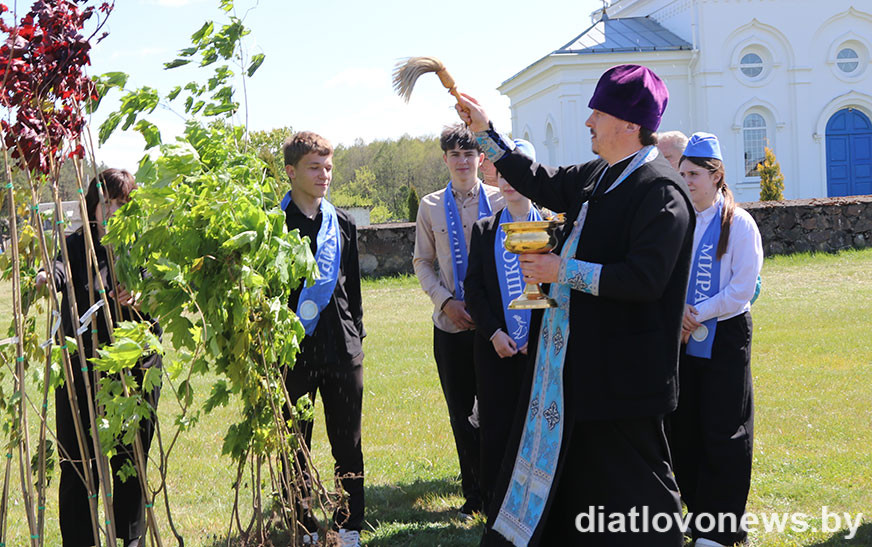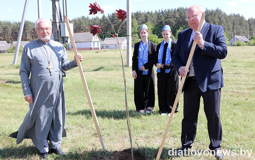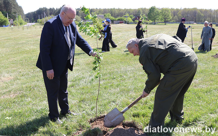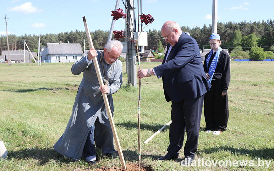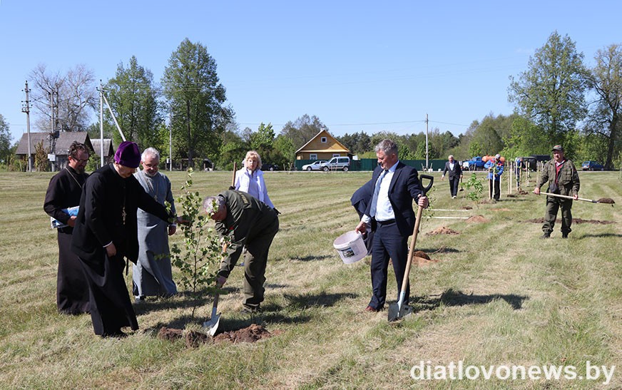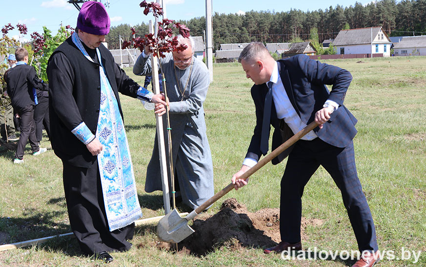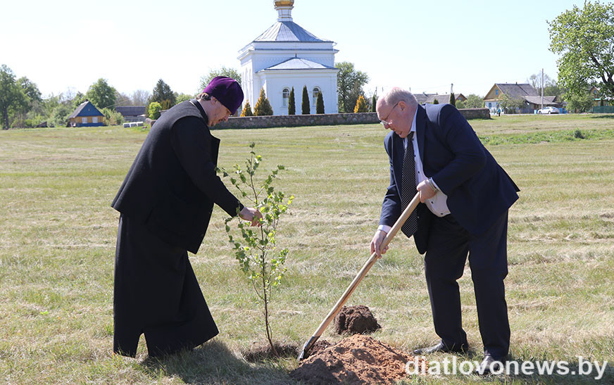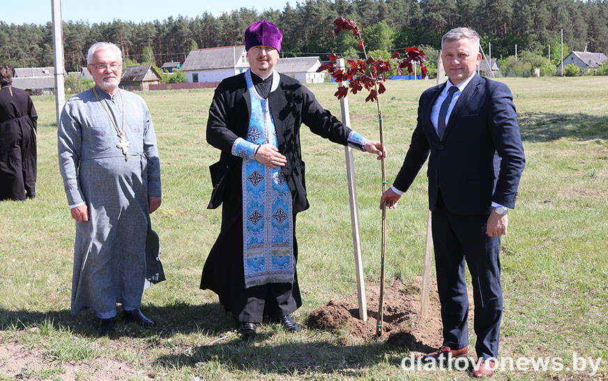 Айцец Іаан разам з настаяцелем царквы Нараджэння Прасвятой Багародзіцы гарадскога пасёлка Наваельня протаіерэем Валерыем Мануйлам, клірыкам сабора Навамучанікаў і спаведнікаў Царквы Рускай у Дзятлаве іерэем Аляксеем Сцепановічам, прысутнымі памаліліся і асвяцілі дрэўцы. Затым усе разам узяліся за работу. У хуткім часе на лузе каля храма з’явіліся два роўныя рады чырвоных і зялёных клёнаў, маладзенькіх бяроз.