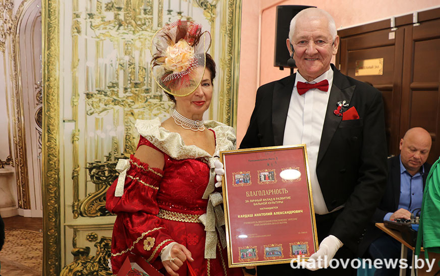 Яшчэ адзін ганаровы госць балю – намеснік старшыні Прэзідыума Беларускай прафесійнай танцавальнай лігі Людміла Цыркун. Яна падзякавала Анатолю Кардашу за арганізацыю такіх цудоўных сустрэч і ўручыла падзяку за асабісты ўклад у развіццё бальнай культуры Рэспублікі Беларусь.