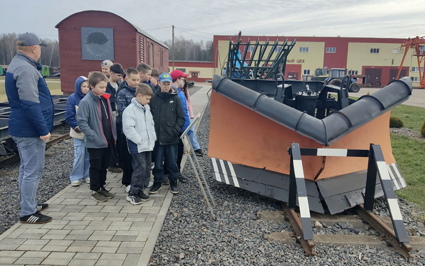 Прадоўжылася знаёмства ў музеі, дзе навучэнцы даведаліся, што здабываць торф пачалі ў 1972 годзе на радовішчы “Бярэзіна”, больш за 50 гадоў таму. Работнікі паказалі школьнікам разнастайную калекцыю сігнальных ліхтароў, форменнае адзенне чыгуначнікаў розных гадоў, інструменты, фатаграфіі і іншыя экспанаты.