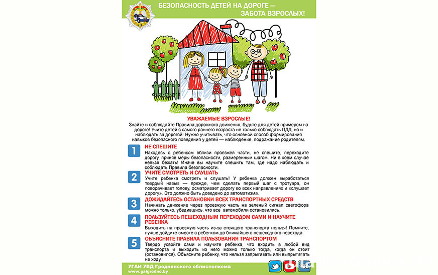 – Находясь с ребенком на проезжей части, не спешите, переходите дорогу размеренным шагом. Иначе вы научите спешить там, где надо наблюдать и обеспечить безопасность.
