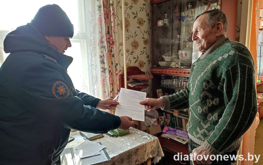 Профилактическая работа дятловских спасателей совместно с корреспондентом районной газеты «Перамога» прошла на территории Поречского и Жуковщинского сельских советов. При посещении домовладений работники МЧС обращали внимание на: состояние розеток, выключателей, наличие перегрузки сети, исправность печей, каминов, обогревателей, расстояние от источников тепла до горючих материалов, наличие пожарных извещателей и своевременную замену элементов питания в них.