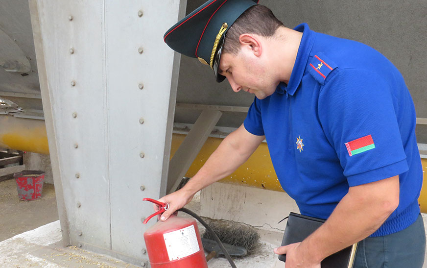 Старший инспектор сектора надзора и профилактики Дятловского райотдела по чрезвычайным ситуациям Сергей Новик и специалист управления сельского хозяйства и продовольствия Сергей Гайдук посетили зерносушильные комплексы сельскохозяйственного филиала «АгроМилк», сельхозпредприятий «Хвиневичи» и «Дворец-Агро».
