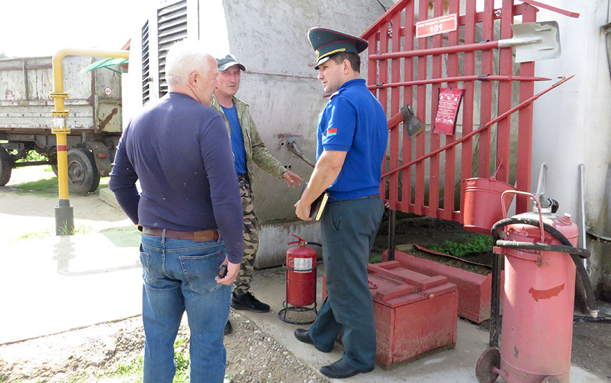 Работники сектора надзора и профилактики Дятловского районного отдела по чрезвычайным ситуациям совместно с представителями управления сельского хозяйства и продовольствия райисполкома и корреспондентом районной газеты «Перамога» продолжают посещать места уборки и переработки урожая, с целью соблюдения аграриями правил пожарной безопасности.