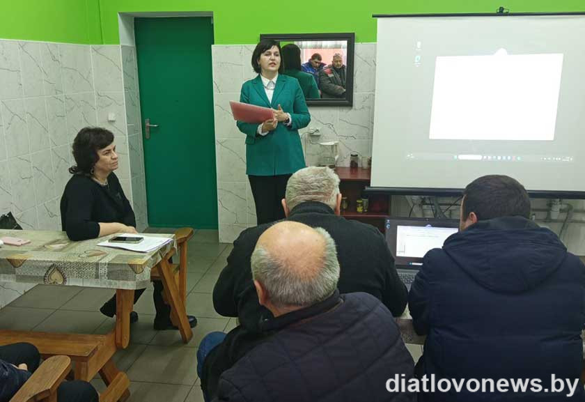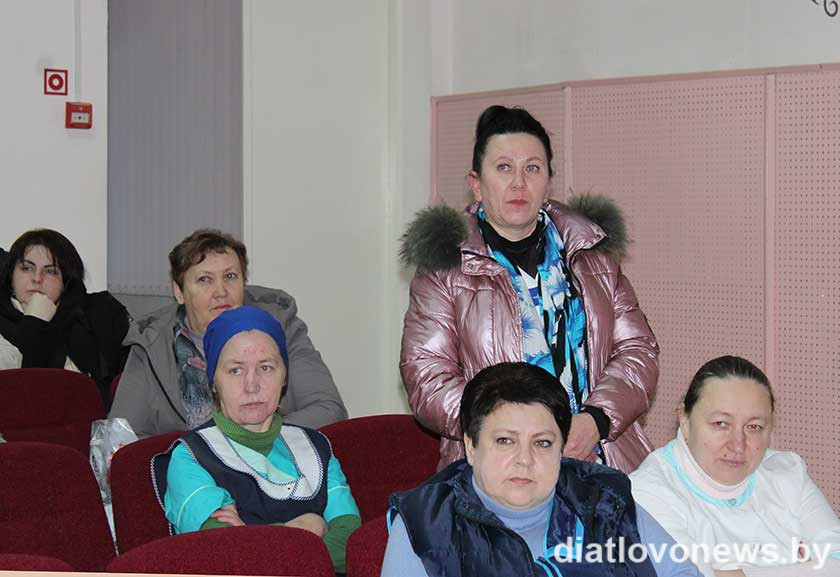 Марыя Шымчык, памочнік доктара-гігіеніста Дзятлаўскага райЦГЭ, расказала работнікам пансіяната пра арганізацыю перыядычных і пазачарговых медыцынскіх аглядаў.