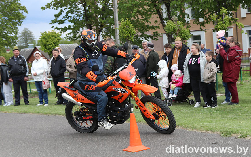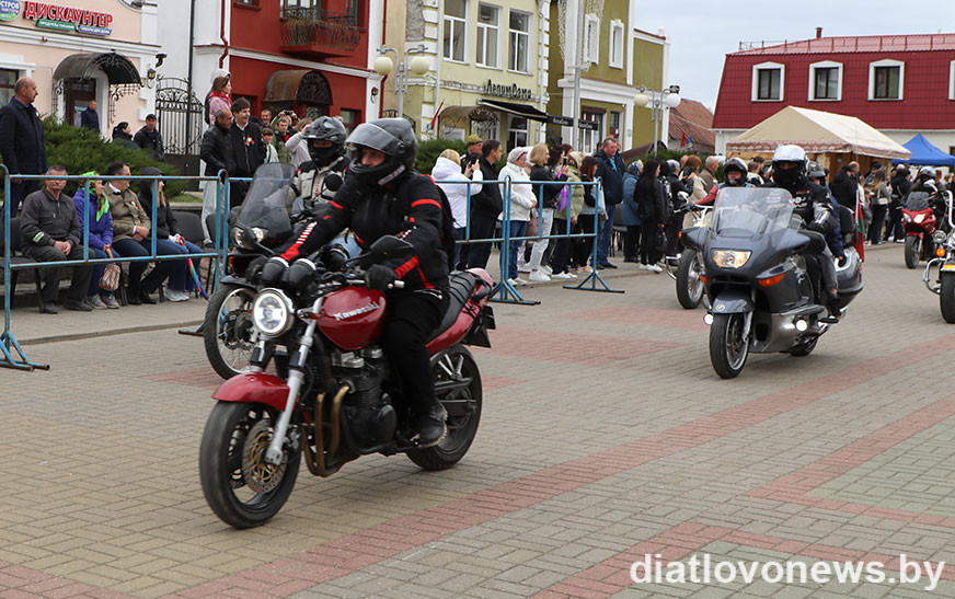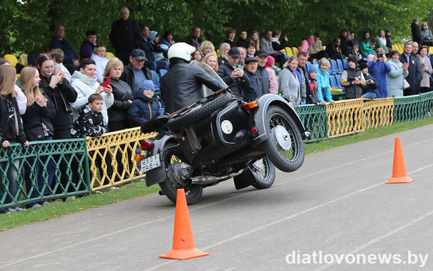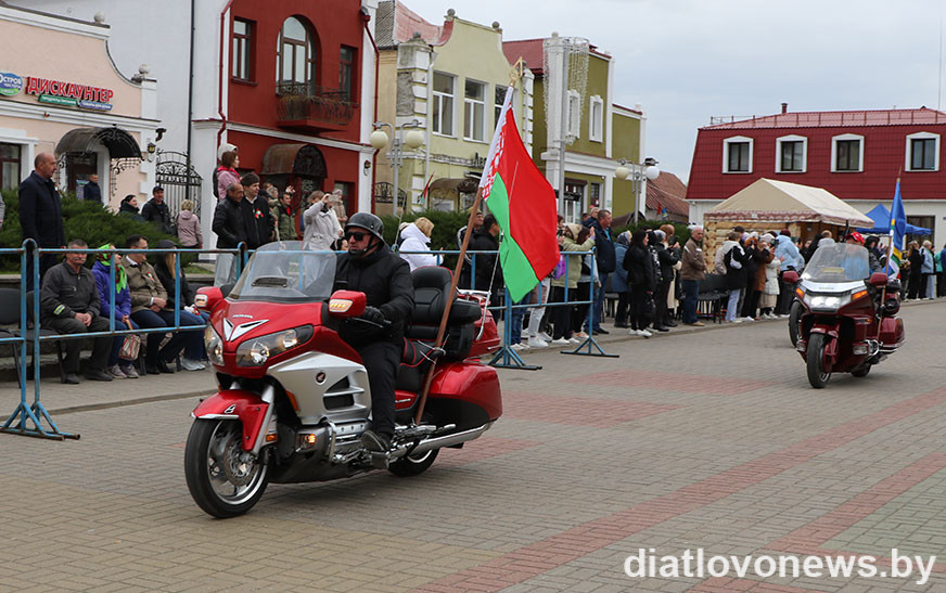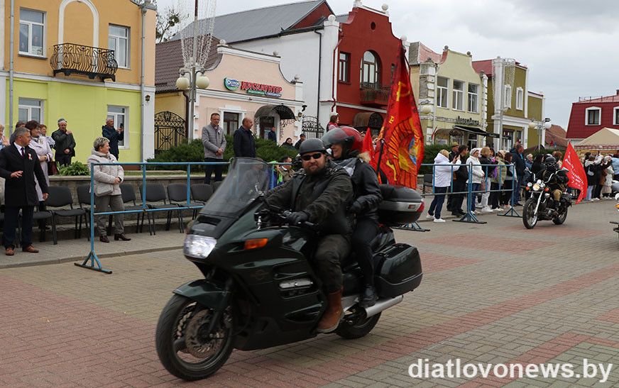 У рамках святочнай праграмы да 80-годдзя Перамогі савецкага народа ў Вялікай Айчыннай вайне дзятлаўчан чакала яркае паказальнае выступленне байкераў пры ўдзеле мотасупольнасці 1-ы рэгіён Баранавічы.