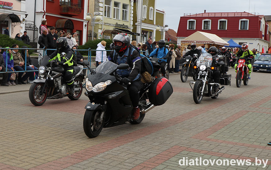 Па-святочнаму ўпрыгожаная мотакалона праехала па цэнтры горада і спынілася на стадыёне “Колас”, дзе яе сустракалі сотні гледачоў. Байкеры прадэманстравалі трукі, фігурнае ваджэнне, гонкі, да якіх была магчымасць далучыцца і ў мотааматараў нашага раёна. Яшчэ прысутныя мелі магчымасць разгледзець “сур’ёзную” тэхніку, пафатаграфавацца і нават пакатацца.