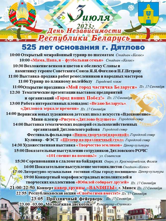 Важнае Да ведама грамадзян 1 min read 266 День Независимости Республики Беларусь. 525 лет основания Дятлово. Афиша administrator 30 июня, 2023 0 Подписывайтесь на телеграм-канал «Дятлово ОНЛАЙН» по короткой ссылке @gazeta_peramoga