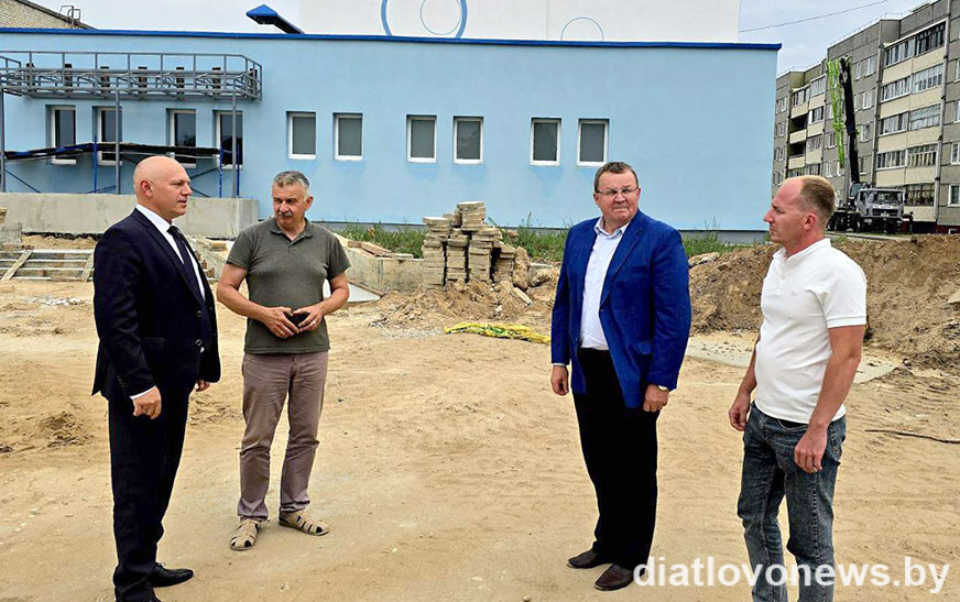 Ён абмеркаваў ход рэканструкцыі лазнева-аздараўленчага комплексу з намеснікам старшыні райвыканкама Дзмітрыем Баравіком, а таксама праінспектаваў аб’ём выкананых работ на аб’екце разам са старшынёй райвыканкама Андрэем Садоўскім.