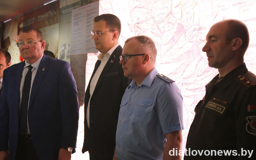 З раніцы кіраўніцтва раёна, прадстаўнікі сілавых ведамстваў, працоўных калектываў, прафсаюза, грамадскіх арганізацый наведваюць перасоўную экспазіцыю, якая прыбыла ў райцэнтр да адметнай даты.