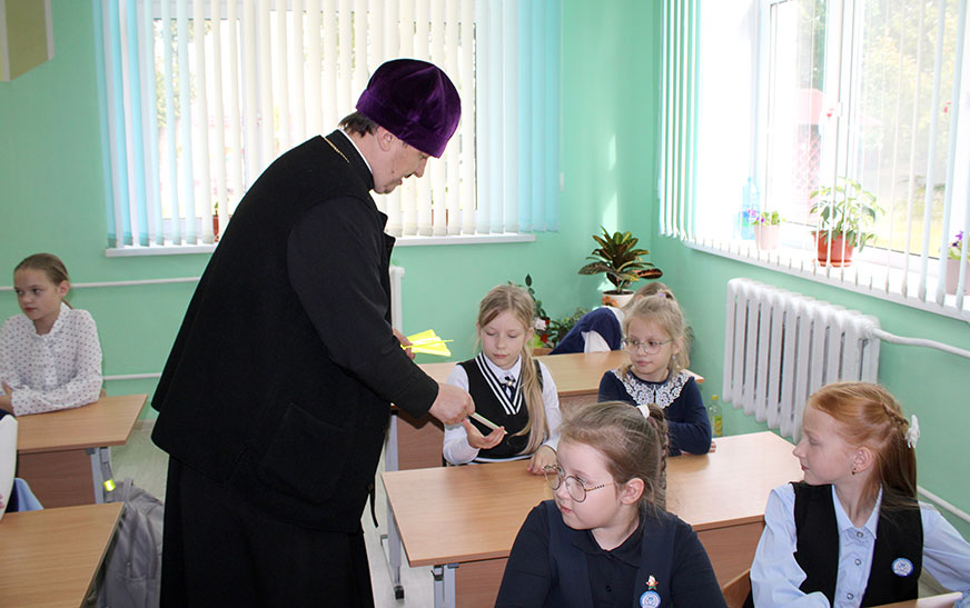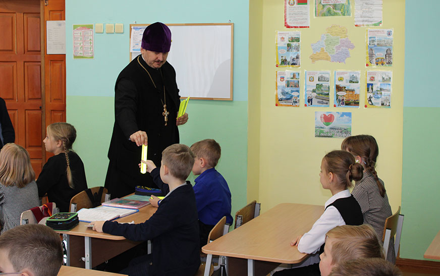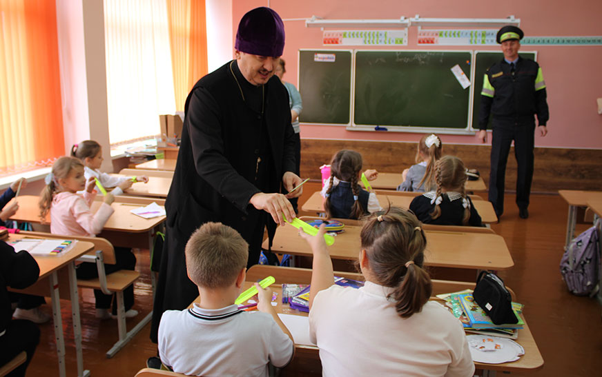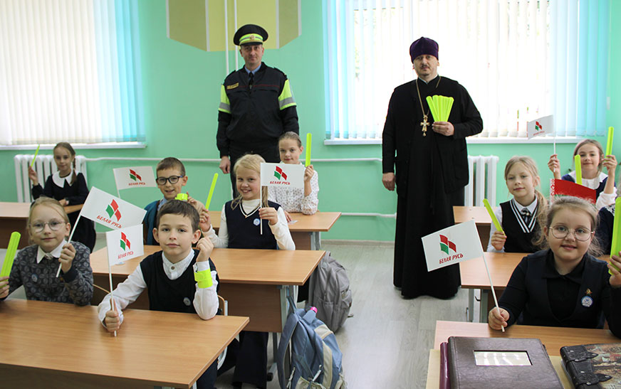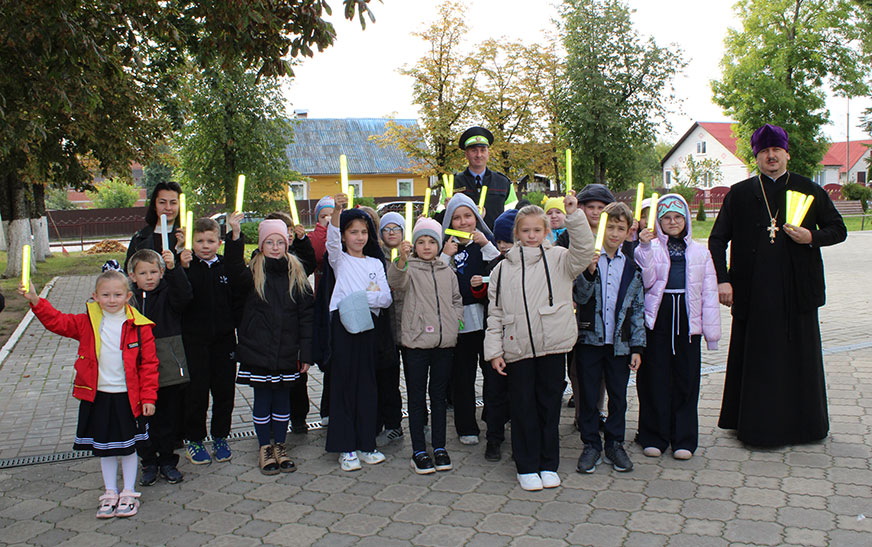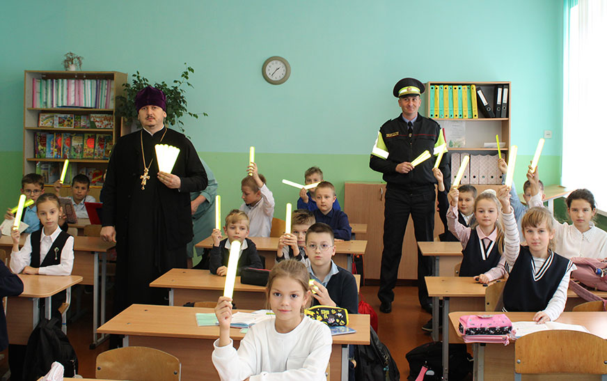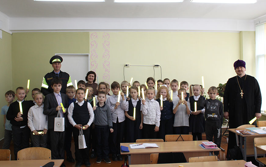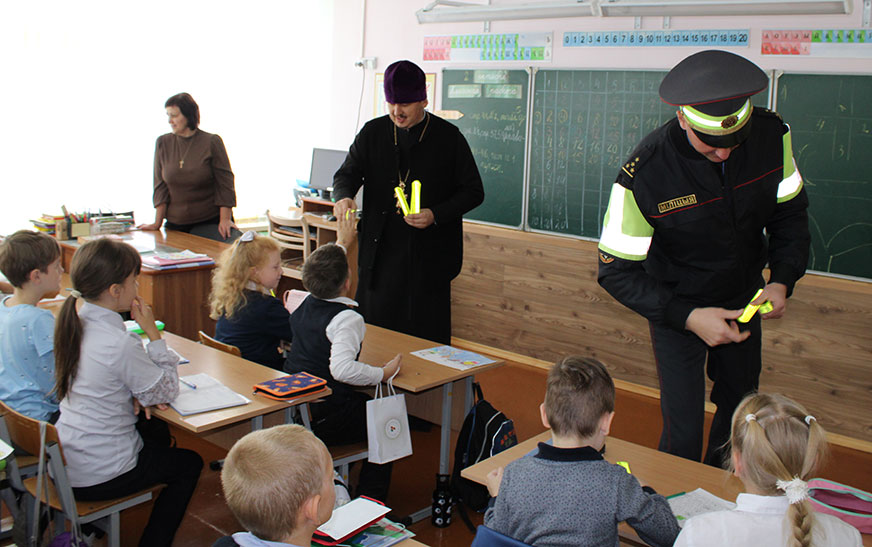 Благачынны цэркваў Дзятлаўскай акругі іерэй Іаан Кісель і дзяржаўтаінспектар міжраённага аддзела ДАІ па абслугоўванні Слонімскага, Дзятлаўскага і Зэльвенскага раёнаў Аляксей Ярмак наведалі школы райцэнтра і раздалі навучэнцам і работнікам флікеры.