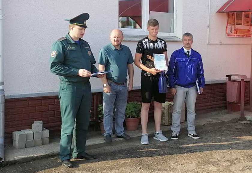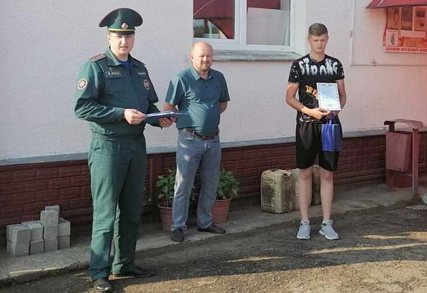 А вось герой, які праявіў смеласць, рашучасць і моцную волю ў экстраннай сітуацыі, быў адзначаны падзякамі райаддзела па надзвычайных сітуацыях і раённай арганізацыі АСВОД.