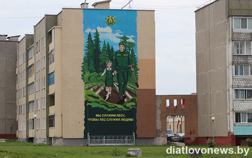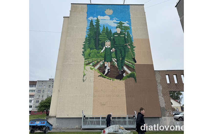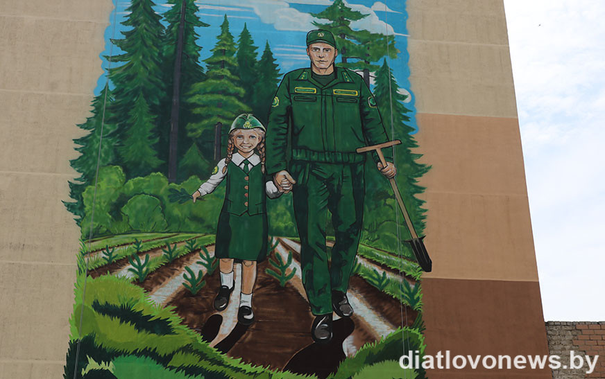 – Аўтарам праекта выступіла Міністэрства лясной гаспадаркі, па ініцыятыве якога да канца года ў Беларусі з’явіцца больш за 100 муралаў на лесаахоўную тэматыку і тэму лясных прафесій. Напрыклад, ключавой фігурай дзятлаўскага палатна стаў вобраз ляснічага, на чыіх плячах трымаюцца асноўныя функцыі, якія выконваюцца работнікамі лясной галіны. Нездарма мурал мае подпіс: “Мы служым лесу, каб ён служыў людзям”. Сімвалічна для Дзятлаўшчыны, што побач з прафесіяналам сваёй справы па лясной сцяжыне ідзе юная памочніца, удзельніца дашкольнага або школьнага лясніцтва, якія ёсць і эфектыўна працуюць у  нашым раёне.