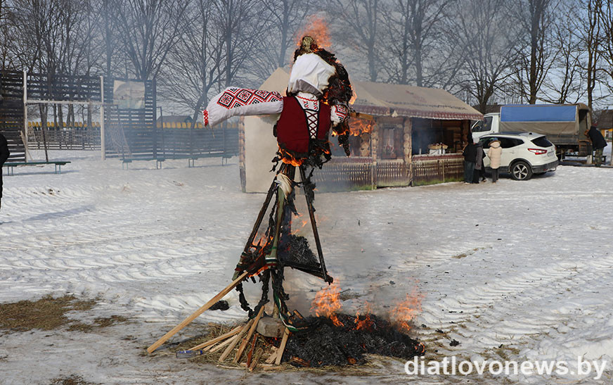 А напрыканцы ўдзельнікі свята правялі традыцыйны народны абрад – спальванне пудзіла Масленіцы, каб разам з агнём згарэлі ўсе крыўды, хваробы і беды.