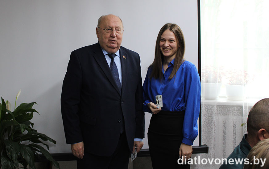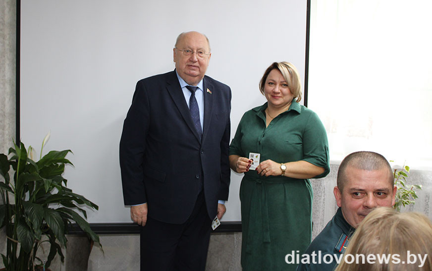 У рамках правядзення Адзінага дня інфармавання ў Дзятлаве адбылася яшчэ адна прыемная падзея – уручэнне партыйных білетаў новым членам раённага аддзялення Беларускай партыі “Белая Русь”. Яго кіраўнік, старшыня раённага Савета дэпутатаў Аляксандр Бараноўскі, павіншаваў са статусам партыйцаў работнікаў дзіцячага сада № 1, сацыяльна-педагагічнага цэнтра горада Дзятлава і раённага цэнтра карэкцыйна-развіваючага навучання і рэабілітацыі.