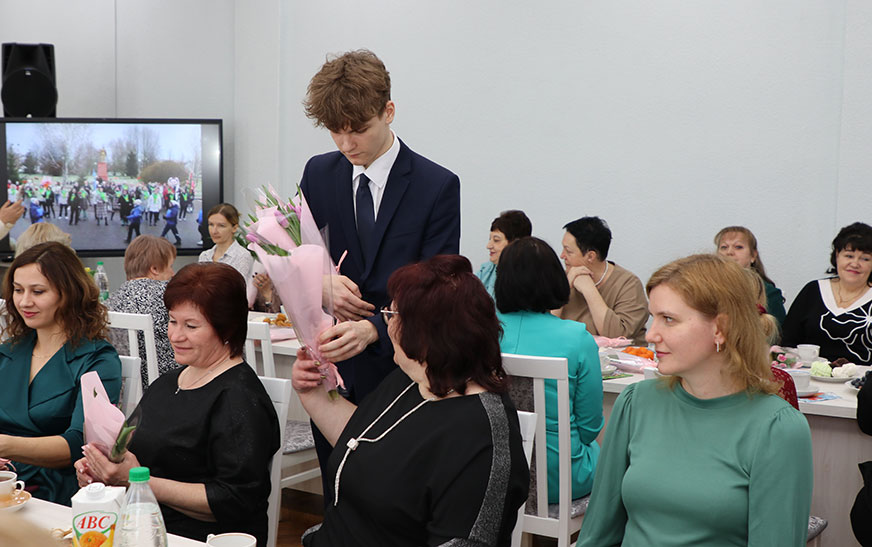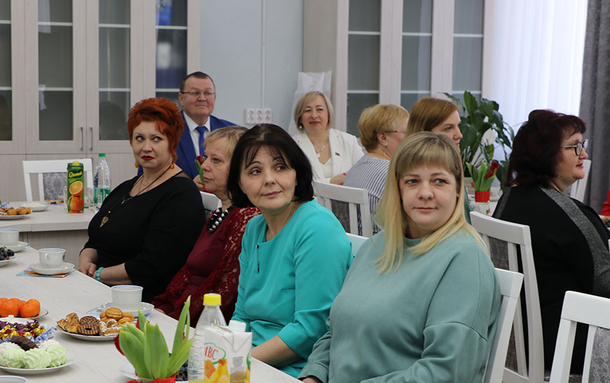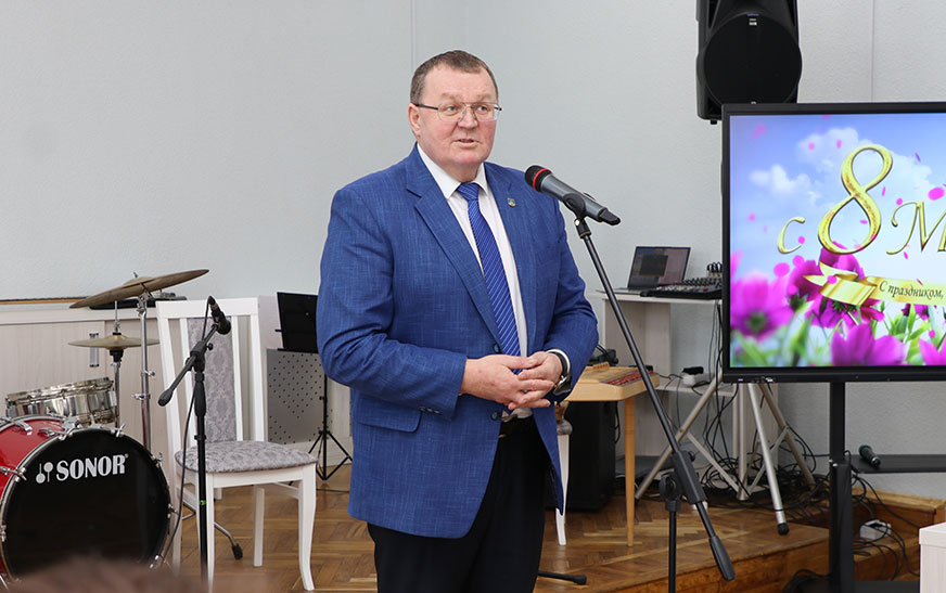 – Дарагія нашы жанчыны, напэўна, гэта самае любімае вясенняе свята – 8 Сакавіка. Наша сустрэча сёння тут невыпадковая –  сярод калектыву, дзе 99, 9 % працуюць жанчыны, тым больш у такі знакавы год. Як сказаў наш Прэзідэнт у навагоднім выступленні, без кахання да жанчыны не бывае сапраўднага кахання, і гэта сапраўды так.  Хочацца выказаць словы ўдзячнасці за вашу працу, на вас прыродай ускладзена вялікая місія, найцяжэйшая, але, паверце, і самая ўдзячная: нараджэнне і выхаванне дзяцей. Прафесія ваша таксама няпростая, бо прыходзіцца працаваць з рознымі людзьмі, праз вашы вочы і сэрцы праходзіць многа розных чалавечых лёсаў. Хачу пажадаць усім моцнага здароўя, дастатку, цярпення, удачы, каб  з вамі  ў жыцці побач  заўсёды былі дастойныя мужчыны –  ваш  тыл , падтрымка  ў любой справе. Вы самыя лепшыя, і менавіта вы ўпрыгожваеце гэты свет. Заставайцеся такімі ж пазітыўнымі, жыццярадаснымі. Са святам вас!