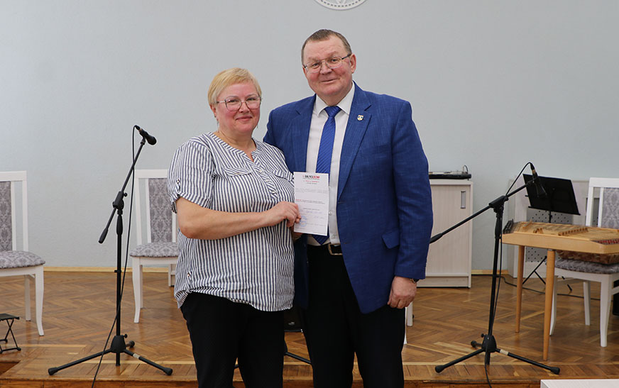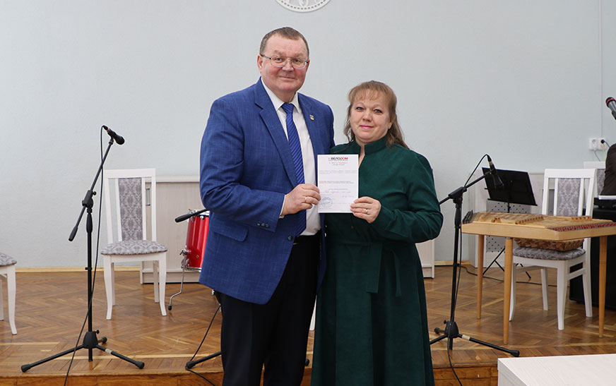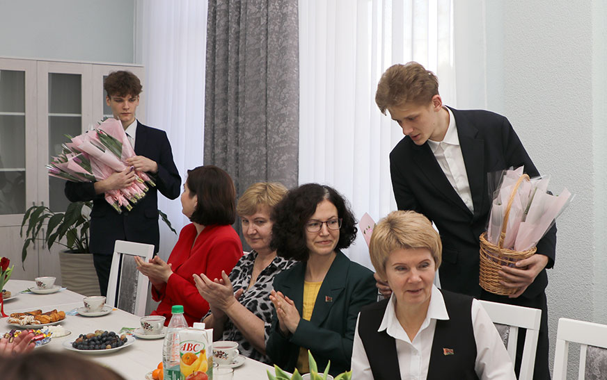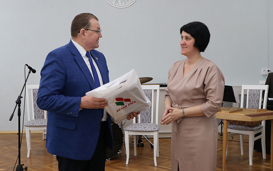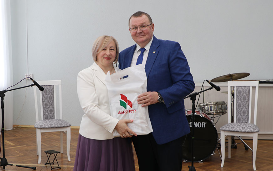 Таксама Андрэй Садоўскі падзякаваў за працу і ўручыў падарункі дырэктару цэнтра Таццяне Нікіпорчык  і  начальніку ўпраўлення па працы, занятасці і сацыяльнай абароне райвыканкама, старшыні раённай арганізацыі “Беларускі саюз жанчын” Алене Васкель, а таксама  кветкі да свята ўсім жанчынам у зале.