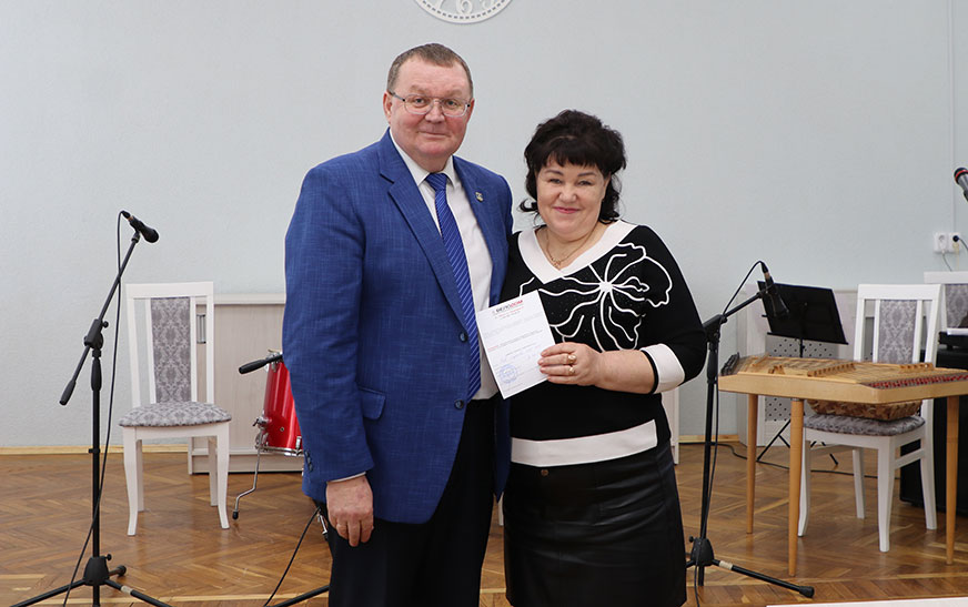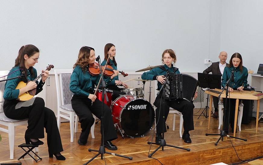 Святочны настрой дарылі прысутным сваімі музычнымі віншаваннямі работнікі Дзятлаўскай дзіцячай школы мастацтваў.