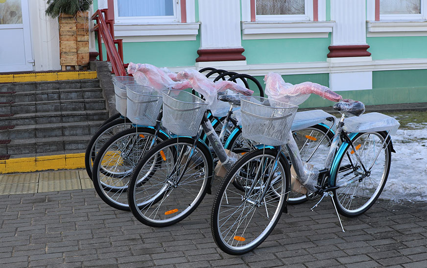 Андрэй Уладзіміравіч уручыў пашпарты на новыя веласіпеды пяці сацыяльным работніцам цэнтра. Зразумела, яны дапамогуць скараціць час на дарогу, адпаведна павялічаць яго на вырашэнне рабочых спраў, ды і аблегчаць працу.