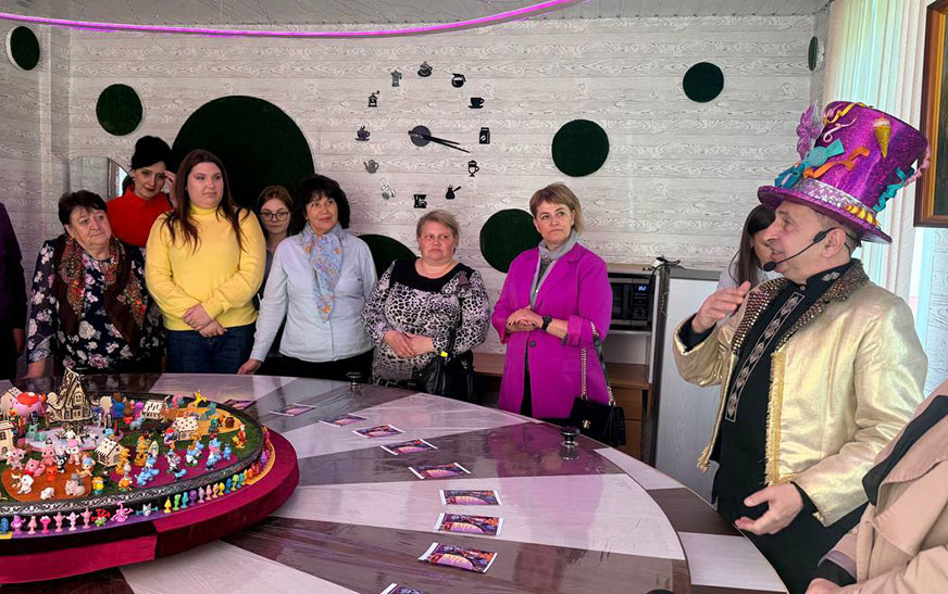 Важный вектор – взаимодействие учреждений культуры в разработке анимационных программ, ориентированных как на местных жителей, так и на туристов. Впечатляющим примером такого сотрудничества стала театрализованная анимация «Оживший штетл». Участники семинара не просто услышали о проекте, а смогли погрузиться в атмосферу еврейского местечка, где через игру, музыку, ремесленные сценки и живое общение воссоздаётся уникальный культурный код Дятловщины.