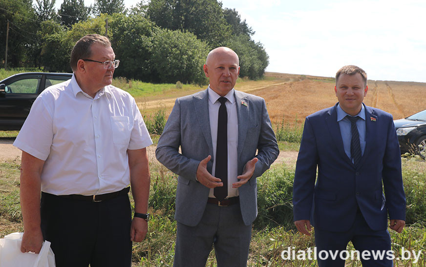 – Прыемна знаходзіцца на дзятлаўскай зямлі, дзе адчуваецца рука гаспадара, – адзначыў Андрэй Жамойда. – Андрэй Садоўскі трымае руку на пульсе, усё кантралюе. Выдалася цудоўная магчымасць пабываць на палетках СГФ “АграМілк”. Белнафтахім задае высокую планку, і не толькі ў Дзятлаўскім раёне. Матэрыяльна-тэхнічная база, якая створана, – гэта ўнікальная магчымасць дасягаць высокіх вынікаў, і вы гэта робіце. Нізкі вам паклон ад Нацыянальнага сходу Рэспублікі Беларусь за нялёгкую працу хлебароба, моцнага здароўя, упэўненасці ў заўтрашнім дні. Я веру, што сёлета атрымаеце важкі ўраджай, зможаце яго захаваць, і ў хуткім часе мы пакаштуем свежы каравай.