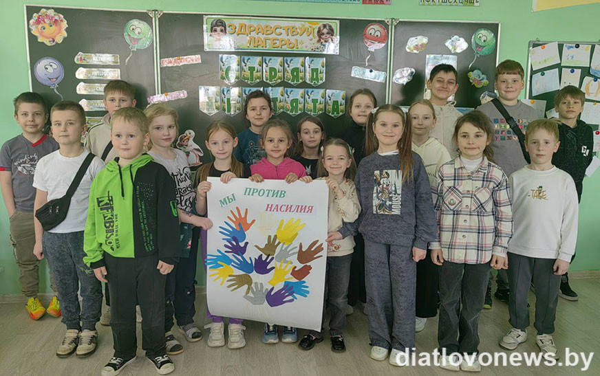 У дзённым выхаваўча-аздараўленчым лагеры “Эрудыт” гімназіі № 1 горада Дзятлава ў рамках PR-акцыя “Дзіцячы свет без жорсткасці і насілля” выхаванцы стварылі калаж “Мы супраць насілля”. Гэта не проста выраб, а магутны заклік да міру, дабрыні і ўзаемаразумення, які аб’яднаў дзяцей розных узростаў. Калаж упрыгожыў сцяну лагера і стаў цэнтрам абмеркаванняў. Гімназісты плануюць прадоўжыць акцыю – раздаць флаеры з лозунгамі “Будзь добрым!” і “Сяброўства перамагае злосць!”.