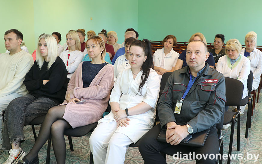 У актавай зале раённай бальніцы адбылася прафілактычная сустрэча прадстаўнікоў сілавых структур і экстранных службаў раёна з калектывам установы, у ходзе якой спецыялісты нагадалі асноўныя правілы бяспекі на працоўных і ў грамадскіх месцах. Перад прысутнымі выступілі намеснік начальніка Дзятлаўскага РАНС Сяргей Кухарчык, намеснік начальніка АУС райвыканкама Андрэй Юшкевіч, інспектар па энергетычным і газавым наглядзе Валянцін Касцюкевіч.