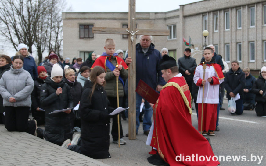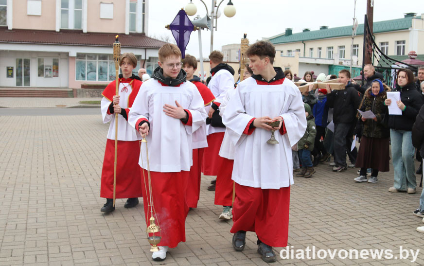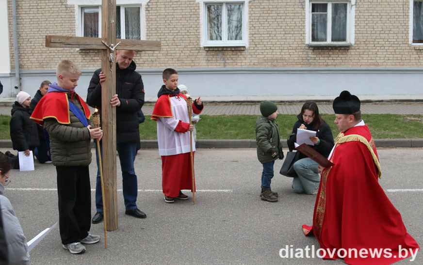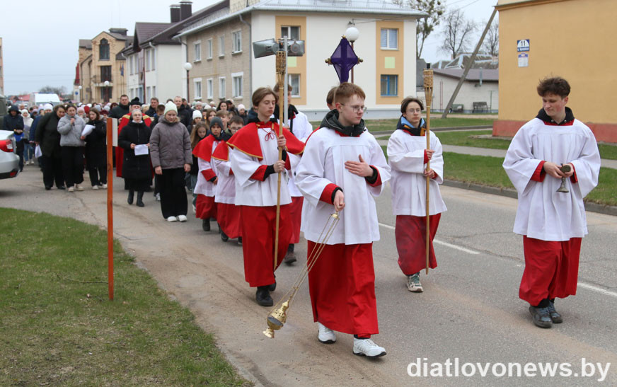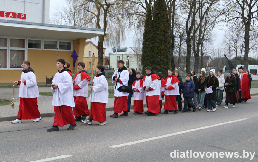 11 красавіка каталіцкія вернікі Дзятлава прайшлі Крыжовым шляхам па вуліцах райцэнтра.