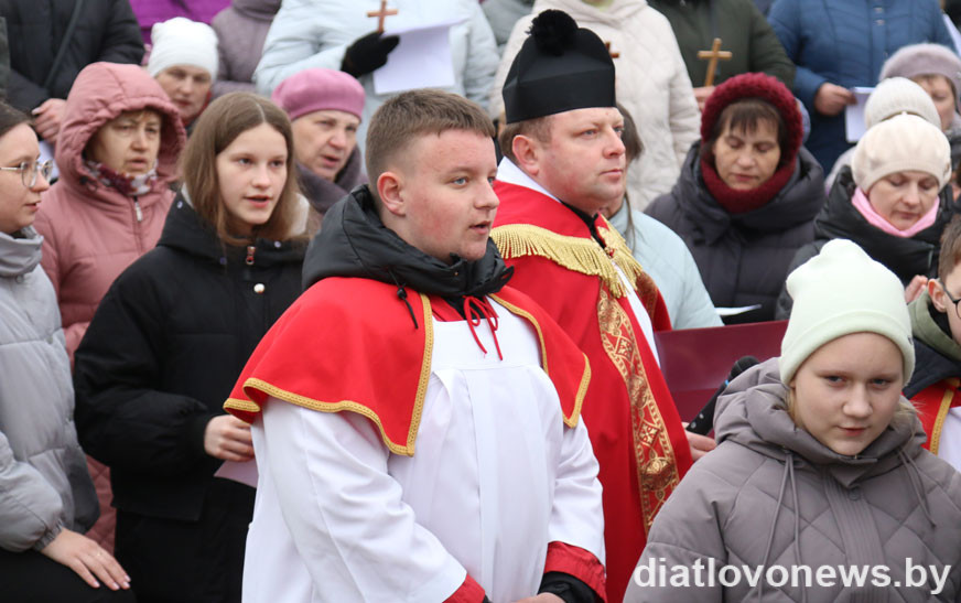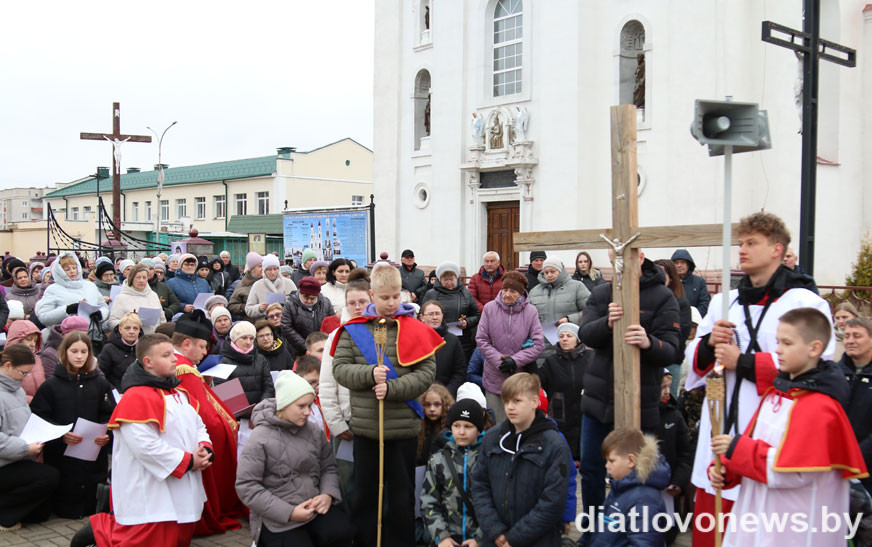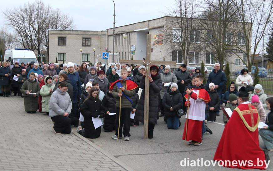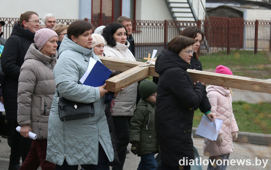 Парафіяне сабраліся каля касцёла Найсвяцейшай Панны Марыі, каб разам прыняць удзел у набажэнстве, паразважаць над апошнімі хвілінамі зямнога жыцця Езуса Хрыста. Наперадзе працэсіі быў крыж. Па чарзе яго неслі моладзь, дзеці, маладыя матулі і таты, міністранты, духавенства, медыкі, педагогі, прадпрымальнікі, работнікі іншых арганізацый горада і людзі пенсійнага ўзросту. Удзельнікі Крыжовага шляху прайшлі праз 14 прыпынкаў – стацыі з разважаннямі.
