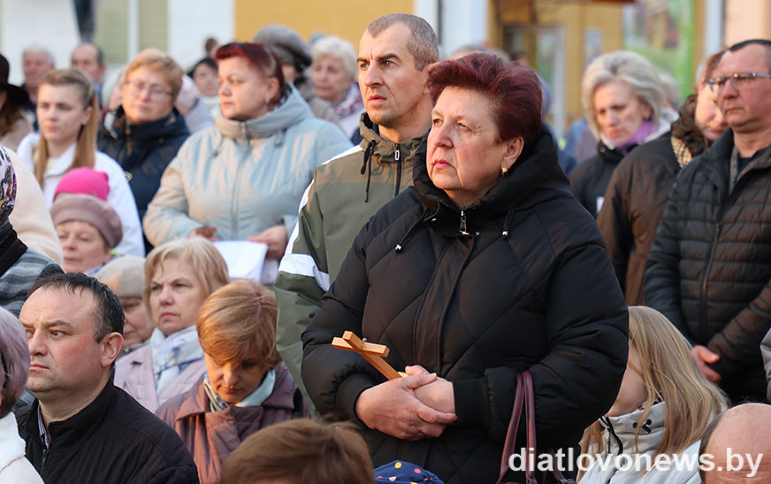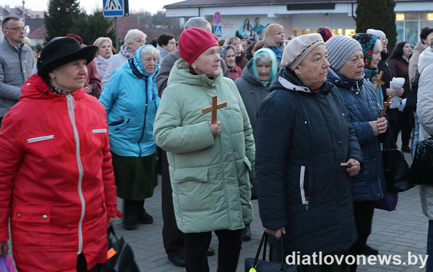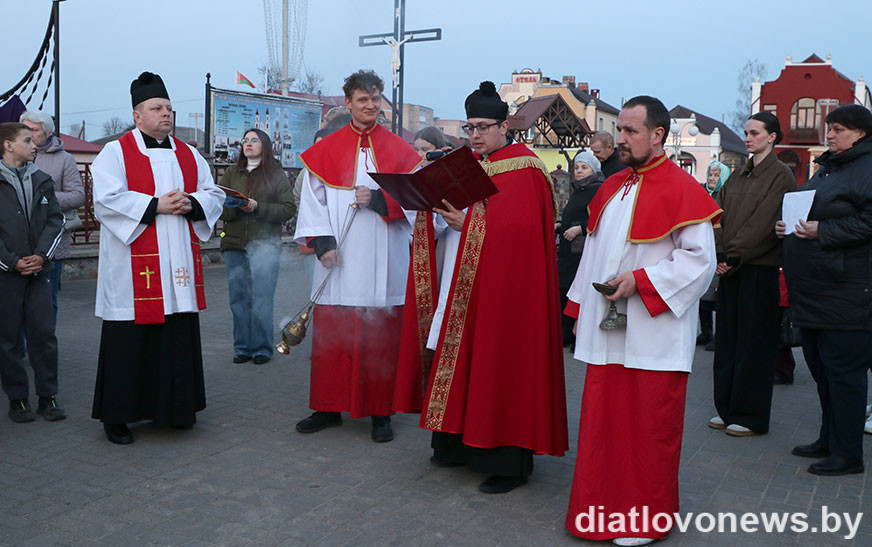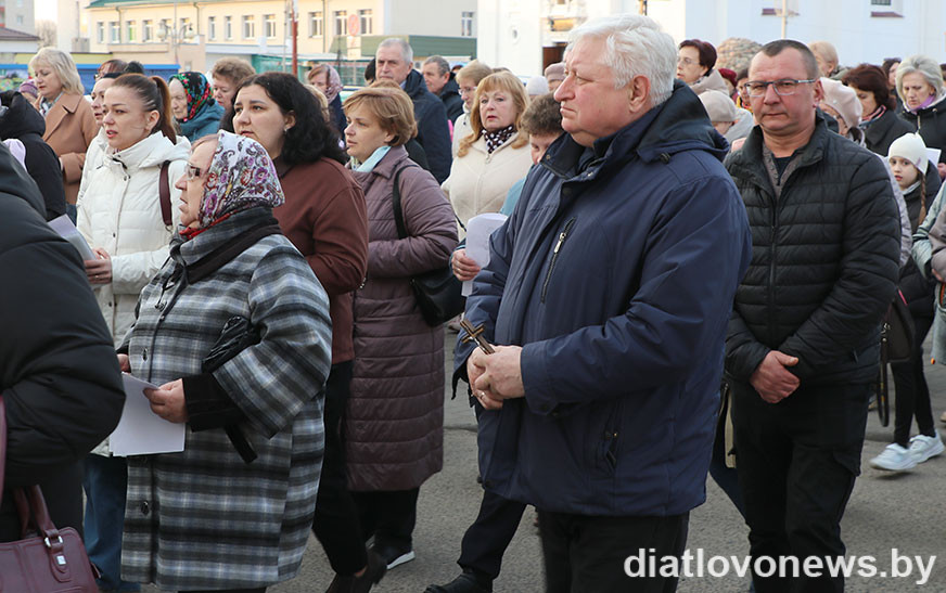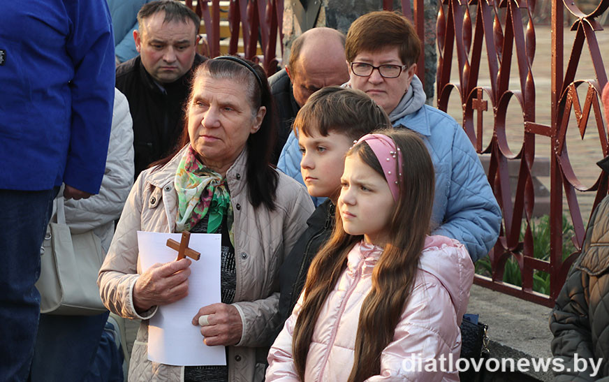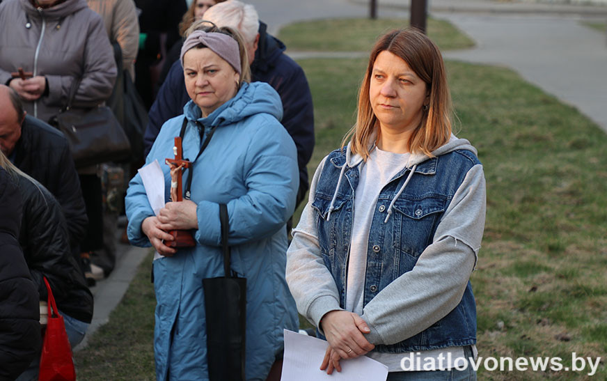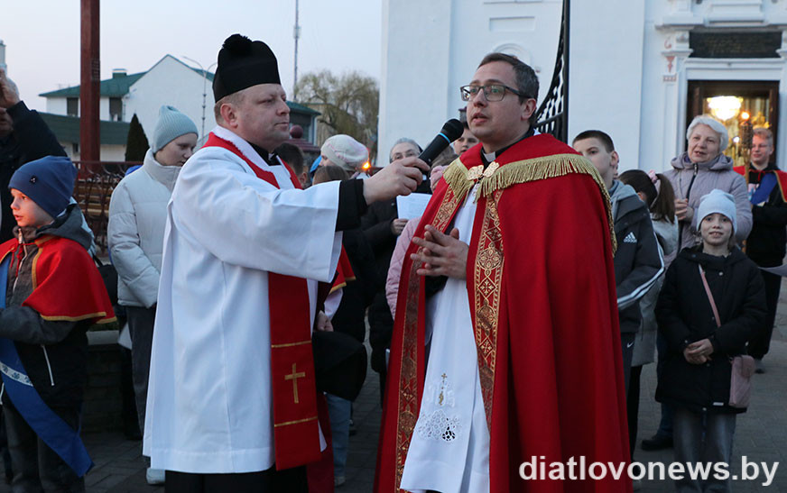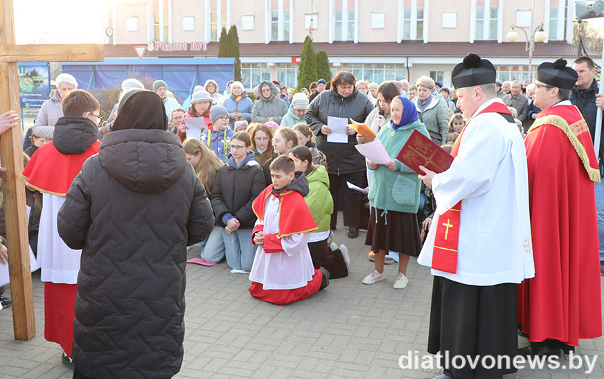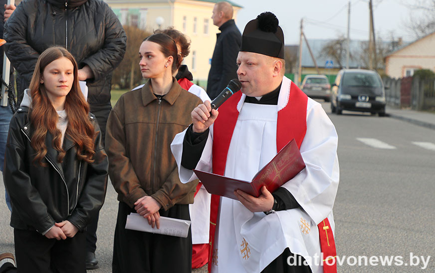 – Сучаснаму чалавеку цяжка ўявiць, як гэта – несцi свой крыж на гару, дзе ён памрэ, праз натоўп народу, якi асуджае, здзекуецца. Сёння і мы нясём крыж нашых грахоў, праблем, сумненняў. Але гэта нашы грахi. А Хрыстос узяў чужы крыж і панёс яго дзеля збаўлення чалавецтва, – звярнуўся да ўдзельнікаў працэсіі ксёндз-пробашч касцёла Андрэй Лішко. – Сярод гэтага натоўпу мы шукаем сябе: што я прачытаю ў любячых і змучаных вачах Збаўцы? Што я яму адкажу? Ці гатовы я падставіць свае плечы, каб гэтаксама пакорна несці свой крыж?
