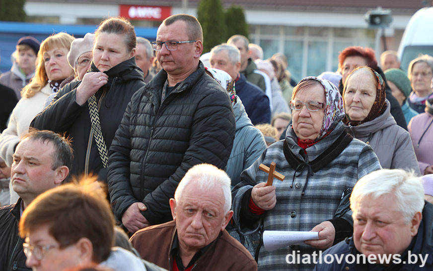 Мужчыны, жанчыны і дзеці, прадстаўнікі розных прафесій і працоўных калектываў па чарзе неслі драўляны крыж. У ім – збаўленне людзей, цярпенне, уменне зносіць пакуты і любіць Пана Бога.