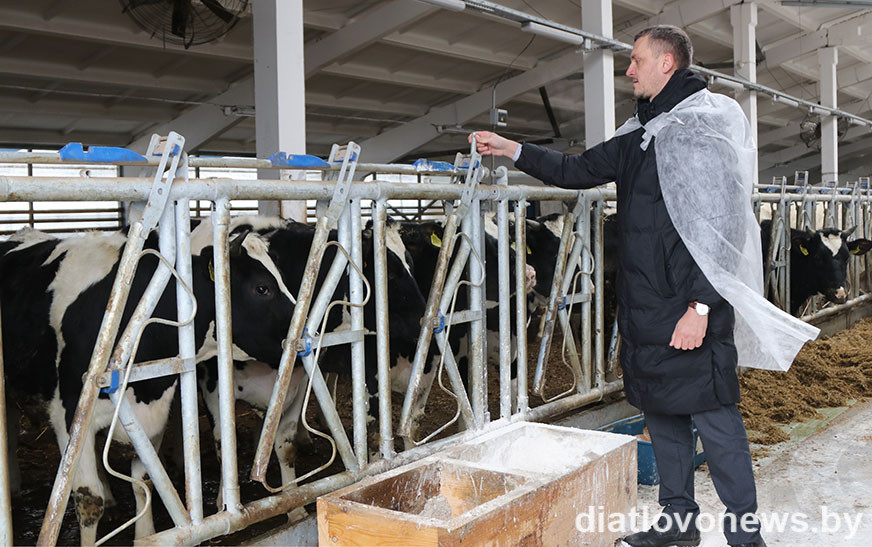 – Наша прадпрыемства адно з двух (другое знаходзіцца ў Бераставіцкім раёне), якія ўваходзяць у холдынг “Молочный Мир”, – прадоўжыў тэму Дзмітрый Дожын. – Гаспадарка вялікая: у нас два жывёлагадоўчыя комплексы, але гэты больш сучасны, другі 2011 года пабудовы, аднак і ён з’яўляецца прадпрыемствам закрытага тыпу. Комплексы – гэта своеасаблівыя “фабрыкі” па вытворчасці малака, якое затым паступае на малочны завод і перапрацоўваецца ў прадукты, якія вы набываеце ў магазінах.