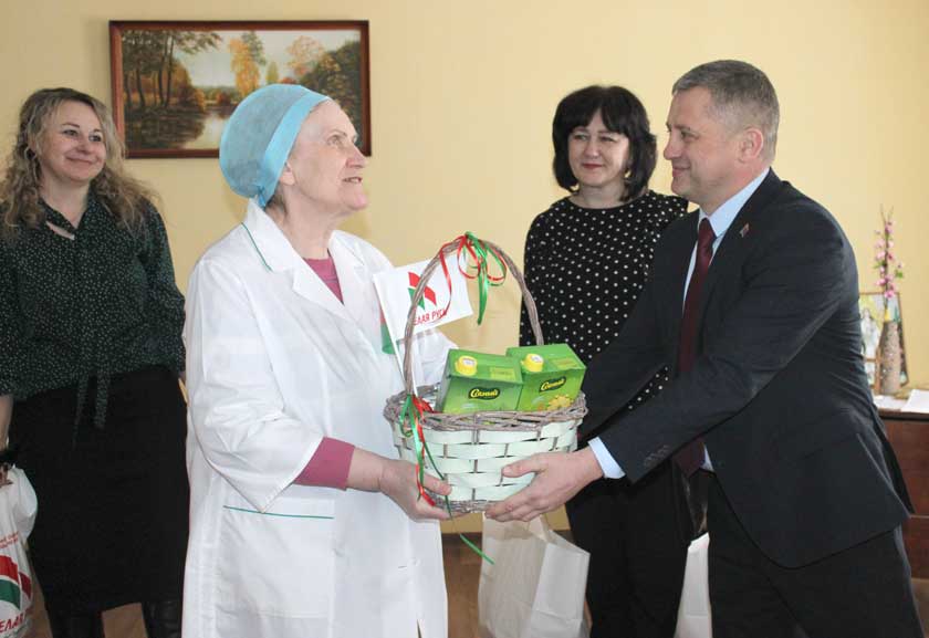 – Ад грамадскага аб’яднання “Белая Русь” жадаю вам усяго найлепшага, – пераняў эстафету віншаванняў Вадзім Бялятка. – У гэтыя святочныя дні ў рамках рэспубліканскай акцыі “Ад усёй душы” мы стараемся агарнуць цяплом і ўвагай людзей паважанага ўзросту, падарыць ім адчуванне свята. Прывезлі і вам вітамінныя падарункі.
