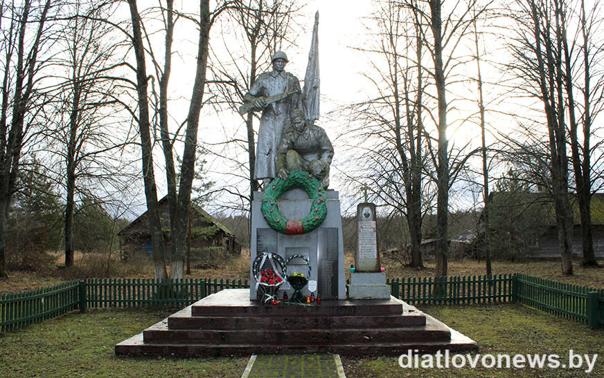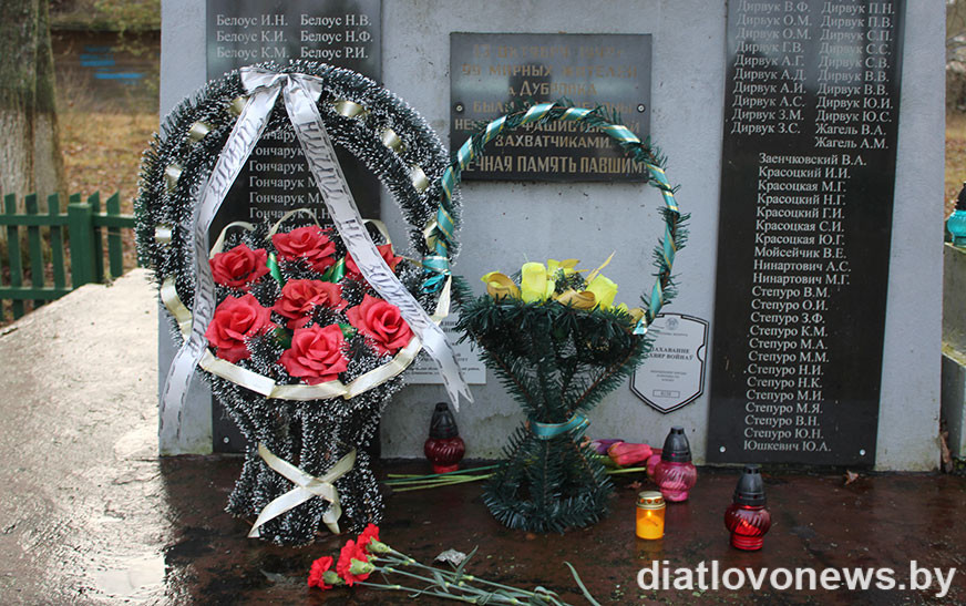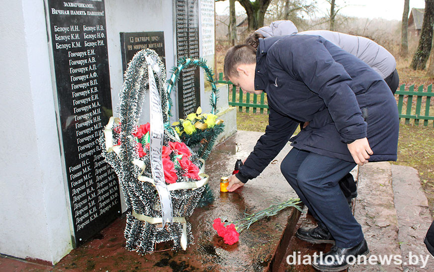 Памяць загінулых у гады ваеннага ліхалецця ўшанавалі хвілінай маўчання і ўcклалі кветкі да помнікаў.