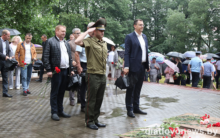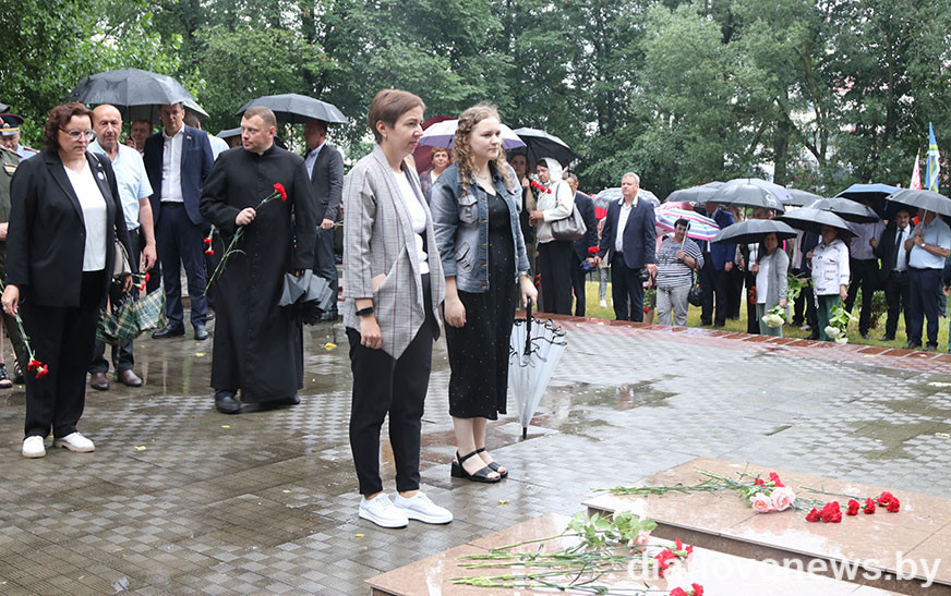 Хвілінай маўчання ўдзельнікі мітынгу ўшанавалі памяць тых, хто не вярнуўся з вайны, хто не дажыў да гэтага светлага дня. У знак нязгаснай памяці і смутку ўсклалі кветкі да падножжа помніка Героям Савецкага Саюза Яну Фогелю і Паўлу Пятрову.