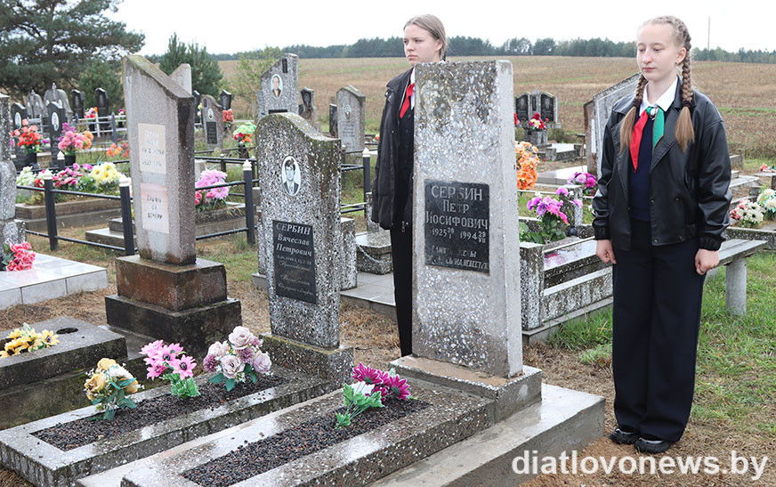 Знак-сімвал на помніку Пятра Сербіна прымацавалі Вадзім Бялятка і Ала Гародка. Памяць ветэрана, а з ім і ўсіх загінулых герояў вайны, прысутныя ўшанавалі хвілінай маўчання і ўскладаннем кветак.