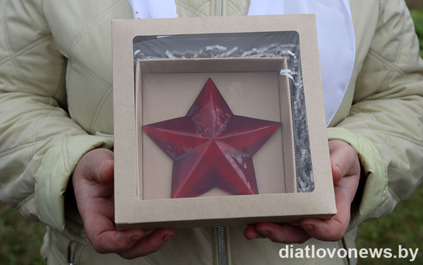 Нагадаем, што першая крыштальная зорка-сімвал заняла сваё пачэснае месца ў гарадскім пасёлку Наваельня на магіле жанчыны-ветэрана Вялікай Айчыннай вайны Таісы Грахнёвай.