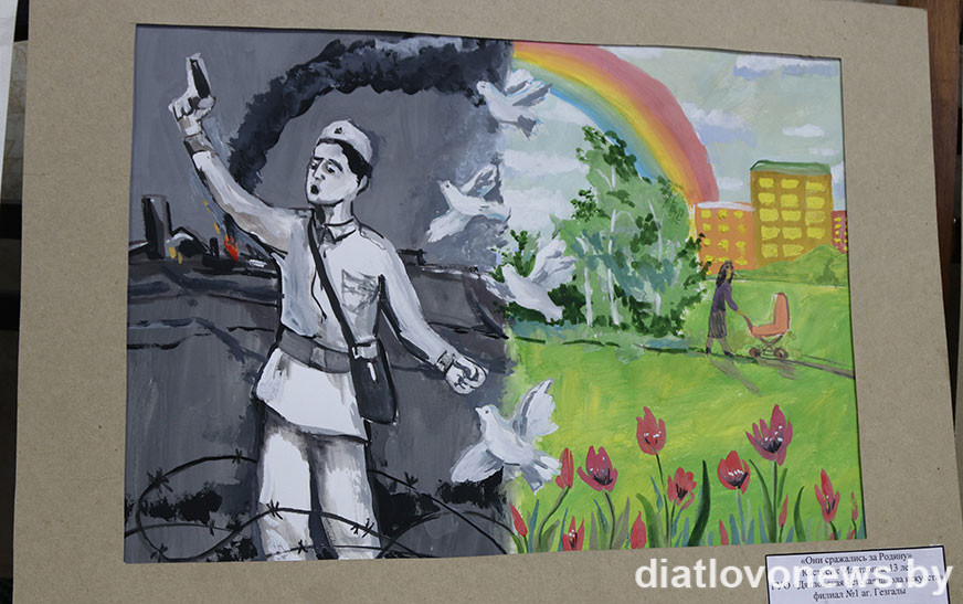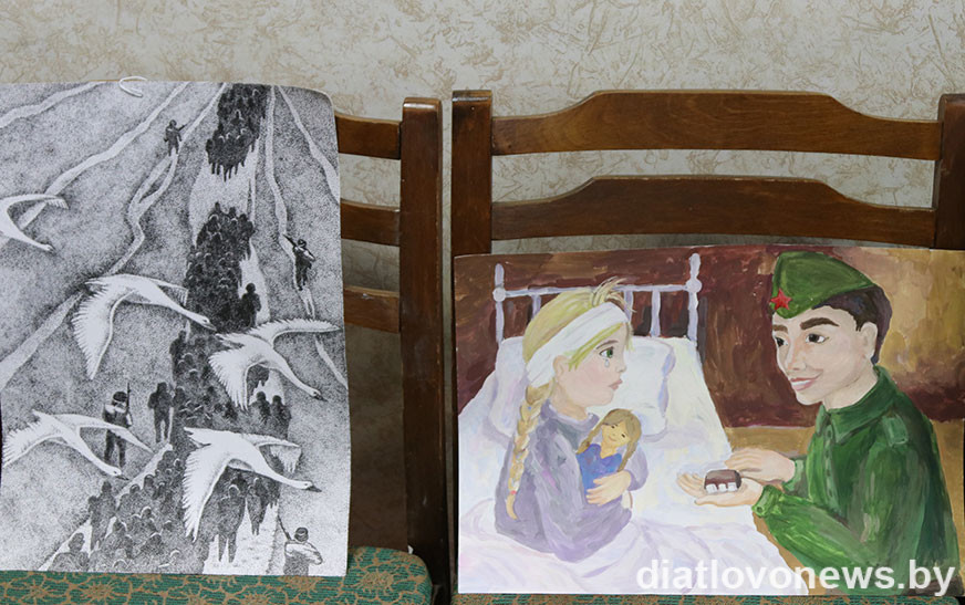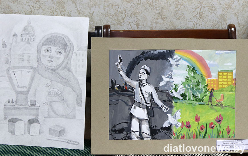 На абласным этапе наш раён прадставяць малюнкі, якія прызнаны лепшымі ў сваіх групах. Гэта работы “Няхай заўжды будзе мір” Лізаветы Курачкінай, навучэнкі Дзятлаўскай дзіцячай школы мастацтваў (педагог Жанна Лукашэня); “Попел вайны і белыя крылы” Анастасіі Уліта, навучэнкі Новаяльнянскай дзіцячай школы мастацтваў (педагог Алена Гайдук); “А. І. Касташкоў” Рамана Марачынскага, навучэнца Гезгалаўскай дзіцячай школы мастацтваў (педагог Аляксандра Жыляніна).
