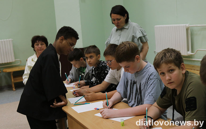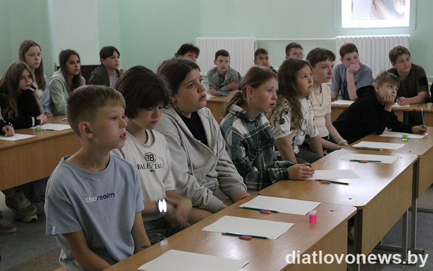 Сёння ў дзіцячы санаторый “Баравічок” да 28 дзяцей з Данбаса, якія адпачываюць на Дзятлаўшчыне, з майстар-класам па маляванні завіталі дырэктар раённага цэнтра дадатковай адукацыі дзяцей і моладзі Таццяна Ваніслаўчык і педагог дадатковай адукацыі, ён жа блогер-мільённік Роберт Асіпук.