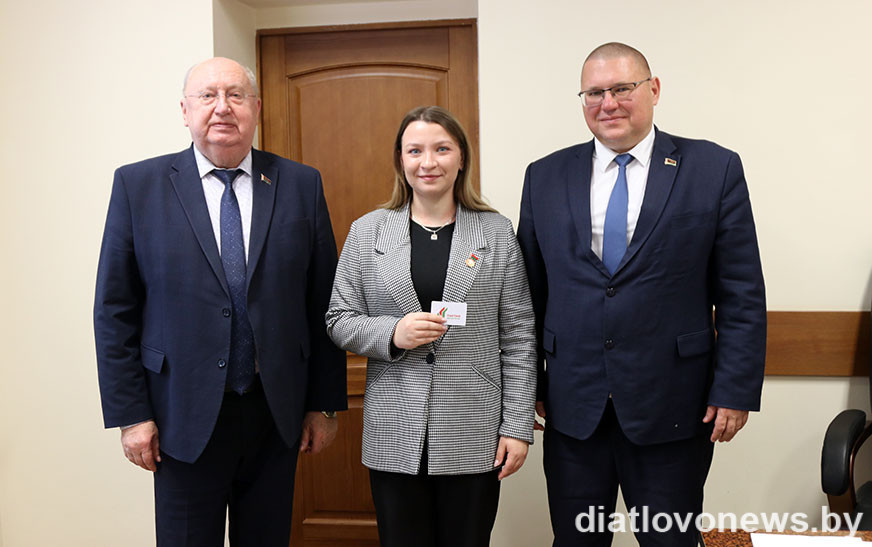 Прыемным завяршэннем прыёму ў Дзятлаве стала ўручэнне членскага білета Беларускай партыі “Белая Русь” члену моладзевага Савета пры Савеце Рэспублікі Нацыянальнага сходу Рэспублікі Беларусь, педагогу-дэфектолагу Хвінявіцкай сярэдняй школы Ангеліне Мазура. Цырымонію прыёму ў партыйцы для нашай зямлячкі правёў старшыня раённага Савета дэпутатаў, ён жа лідар раённага аддзялення партыі Аляксандр Бараноўскі. Павел Ашурык далучыўся да віншаванняў маладой актывісткі.