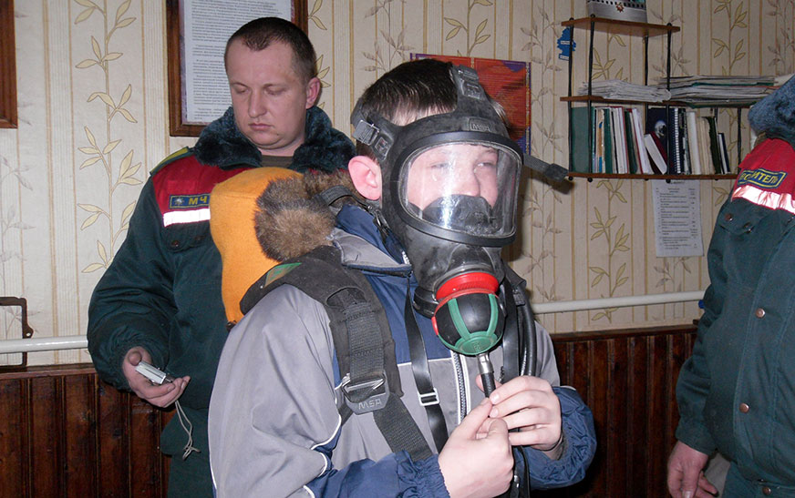 – Гэтыя фота былі зроблены ў 2016 годзе, калі я служыў у Раготне, выконваў абавязкі начальніка паста. Традыцыйна, калі ў школьнікаў канікулы або дні адчыненых дзвярэй, яны прыходзяць на экскурсіі на пажарныя пасты і ў часці, цяпер у Дзятлаве бывае нават некалькі экскурсій на дзень. Раготнаўская школа невялікая, таму экскурсійныя групы былі рознага ўзросту. Максім і яшчэ некалькі хлопцаў заўважна выдзяляліся: яны не саромеліся нешта пытаць у нас, былі вельмі цікаўнымі, прасілі патрымаць у руках абсталяванне, прымерыць амуніцыю на сябе, – расказвае Уладзімір Пятровіч. – Мы паказвалі камплектацыю пажарнага аўтамабіля, тады ён быў на базе “Урала”, праводзілі баявое разгортванне. Максім тады надзяваў апарат на сціснутым паветры, праз які дыхаецца зусім не так, як звычайна, і гэта вельмі цікава дзецям.