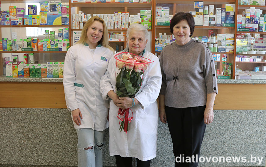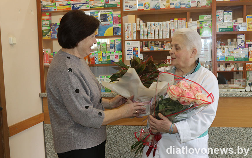 1 красавіка яна прымала цёплыя віншаванні з юбілейным днём нараджэння ад загадчыцы цэнтральнай раённай аптэкі № 55 Дзятлаўскага раёна Гродзенскага РУП “Фармацыя” Лідзіі Баравік.